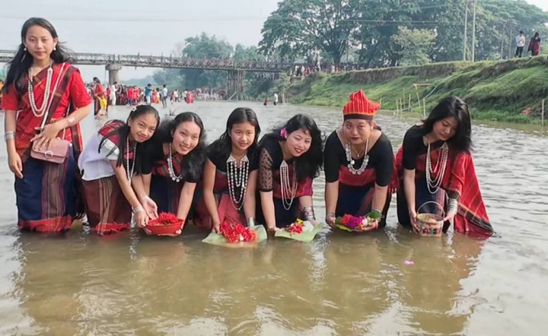ফুল বিঝুতে মেতে উঠেছে খাগড়াছড়ি, নদীতে ফুল ভাসিয়ে মঙ্গল কামনা