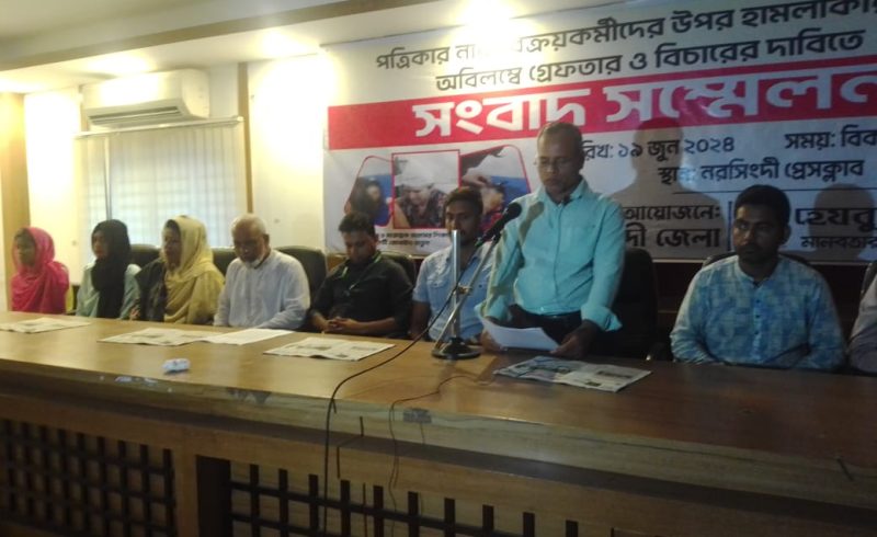 নরসিংদীর রায়পুরায় হাসনাবাদ বাজারে নারী পত্রিকা বিক্রয় কর্মীদের উপর হামলাকারীদের অবিলম্বে গ্রেফতার ও বিচারের দাবিতে । “সংবাদ সম্মেলন”।