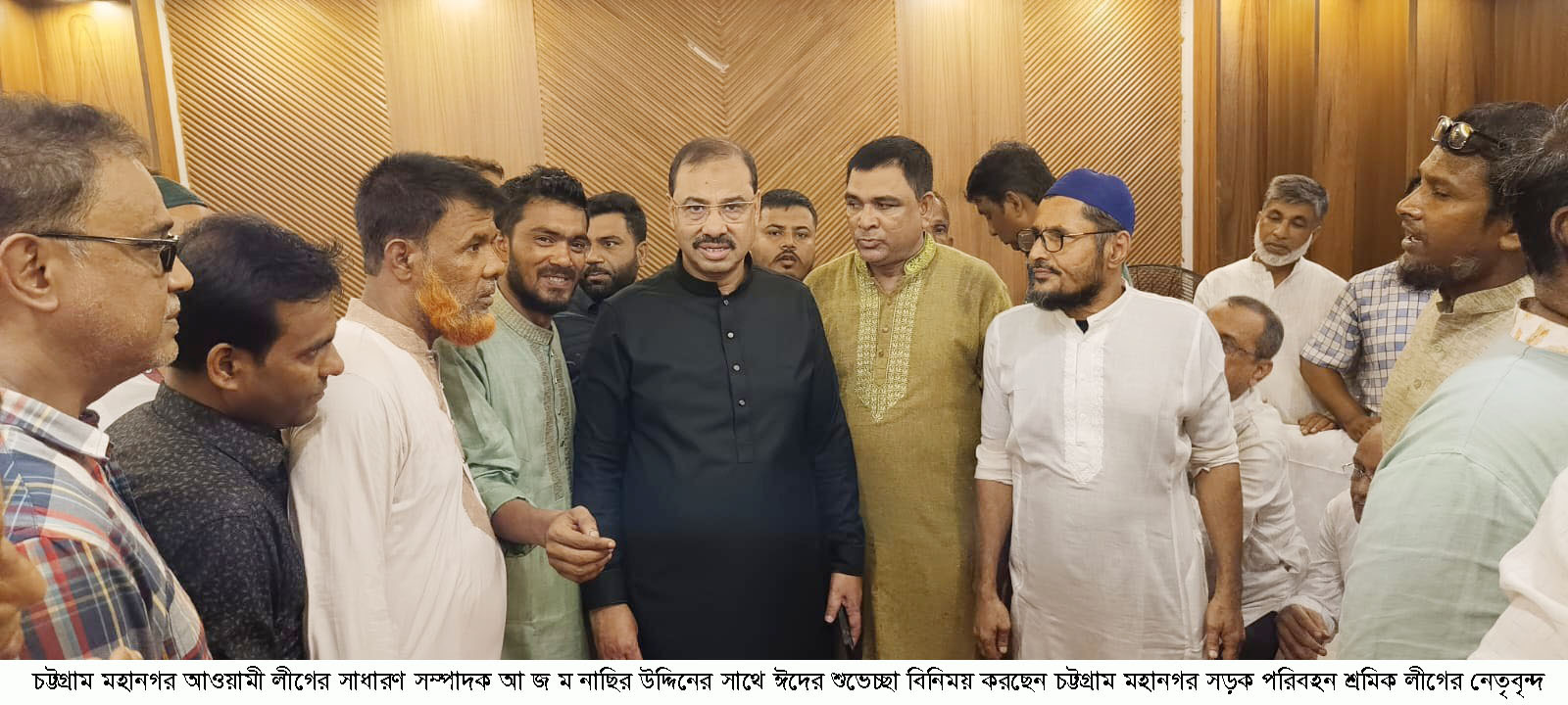 চট্টগ্রাম মহানগর সড়ক পরিবহন শ্রমিক লীগের নেতৃবৃন্দ সংগঠনের সাধারণ সম্পাদক মো. কালিম শেখের নেতৃত্বে গত ২১ জুন, শুক্রবার, সকাল ১১টায় নগরীর আন্দরকিল্লাস্থ বাসভবনে সাবেক সিটি মেয়র আলহাজ্ব আ জ ম নাছির উদ্দিনের সাথে ঈদ-পরবর্তী সৌজন্য সাক্ষাতে মিলিত হন। এ সময় অন্যান্যের মধ্যে আরো উপস্থিত ছিলেন সংগঠনের কার্যকরী সভাপতি স ম জিয়াউর রহমান, সহসভাপতি মো. বাচ্চু মিয়া, মো. আবু হানিফ জনি, যুগ্ম সাধারণ সম্পাদক শেখ রফিক, গাজী মোহাম্মদ আবদুল্লাহ, সাংগঠনিক সম্পাদক মো. শরিফ, মো. বায়েজিদ ফরায়েজি, অর্থ সম্পাদক মো. শাহ আলম, দপ্তর সম্পাদক মো. হেলাল উদ্দিন, সমাজকল্যাণ সম্পাদক মো. ইয়ামিন, আন্তর্জাতিক বিষয়ক সম্পাদক মো. মিলন, সড়ক বিষয়ক সম্পাদক মামুনুর রশিদ মামুন, সাবেক দপ্তর সম্পাদক মো. দিদারুল আলম, কার্যনির্বাহী সদস্য মো. মোস্তফা, মো. শাহাদাত প্রমুখ।