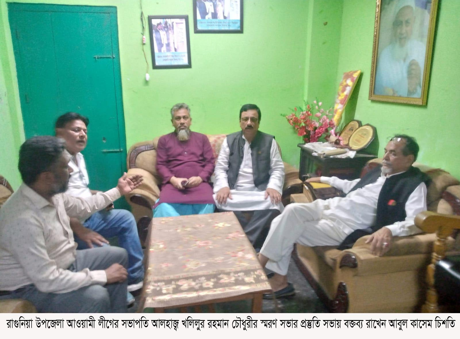 রাঙ্গুনিয়া উপজেলা আওয়ামী লীগের সভাপতি, রাঙ্গুনিয়া পৌরসভার মেয়র ও রাঙ্গুনিয়া উপজেলার চেয়ারম্যান আলহাজ্ব খলিলুর রহমান চৌধুরীর চতুর্থ মৃত্যু বার্ষিকী উপলক্ষে স্মরণ সভা সফল করতে এক প্রস্তুতি সভা আজ ১৩ জুলাই শনিবার বিকাল চারটায় রাঙ্গুনিয়া পৌরসভাধীন খলিলুর রহমান অডিটোরিয়ামে ডিজিটাল বাংলাদেশ পাবলিসিটি কাউন্সিলের মুক্তিযুদ্ধ বিষয়ক সম্পাদক ও খলিলুর রহমান চৌধুরী স্মৃতি সংসদের আহ্বায়ক বীর মুক্তিযোদ্ধা এস এম লিয়াকত হোসেন।
