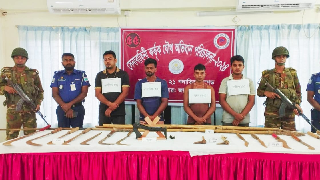 নড়াইলের পল্লীতে তুচ্ছ ঘটনার মিমাংসার সময় দলীয় কোন্দলে বিএনপির ৫ নেতাকর্মী আহত দেশি অস্ত্রসহ সেনাবাহিনীর হাতে আটক ৪