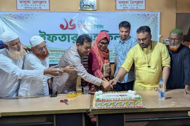 ময়মনসিংহের ভালুকায় দেশের সর্বাধিক প্রচারিত দৈনিক বাংলাদেশ প্রতিদিন ১৬ বছর পদার্পণ উদযাপন করা হয়েছে। শনিবার বিকালে ভালুকা প্রেসক্লাব মিলনায়তনে ইফতার মাহফিল, দোয়া ও কেক কাটার মাধ্যমে দিনটি উদযাপন করা হয়।