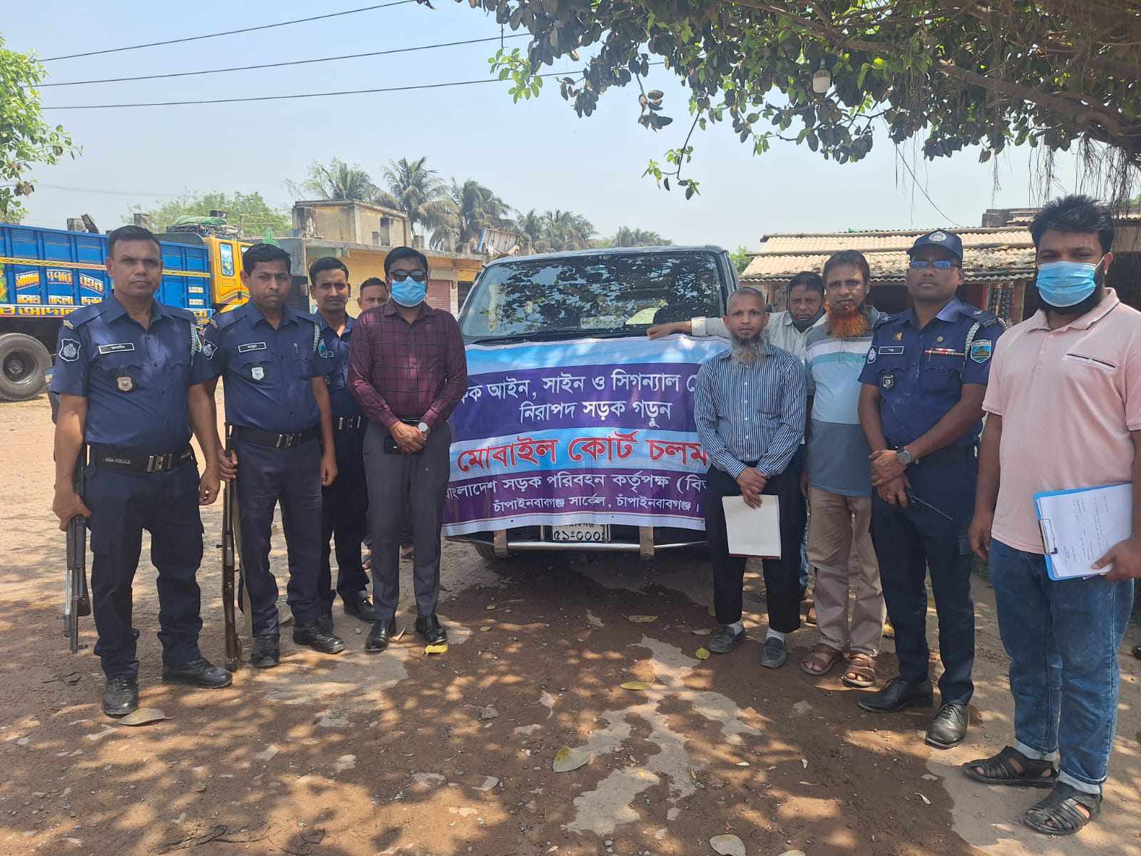 অভিযান পরিচালনা করেন জেলা প্রশাসনের এক্সিকিউটিভ ম্যাজিস্ট্রেট জনাব অনুজ চন্দ মহোদয়, সহকারি পরিচালক ইঞ্জিনিয়ারিং শাহ জামাল হক,পুলিশ বিভাগ ও বিআরটিএ, চাঁপাইনবাবগঞ্জ সার্বিক সহযোগিতা করেন। অভিযানে অতিরিক্ত ভাড়া আদায় প্রতিরোধে মনিটরিং কার্যক্রম গ্রহণ করা হয়। এছাড়া অতিরিক্ত গতিতে মোটরযান চালানো, ফিটনেস বিহীন মোটরযান, হেলমেট বিহীন মোটরসাইকেল এবং লাইসেন্স বিহীন চালকের বিরুদ্ধে ব্যবস্থা গ্রহণ করা হয়।