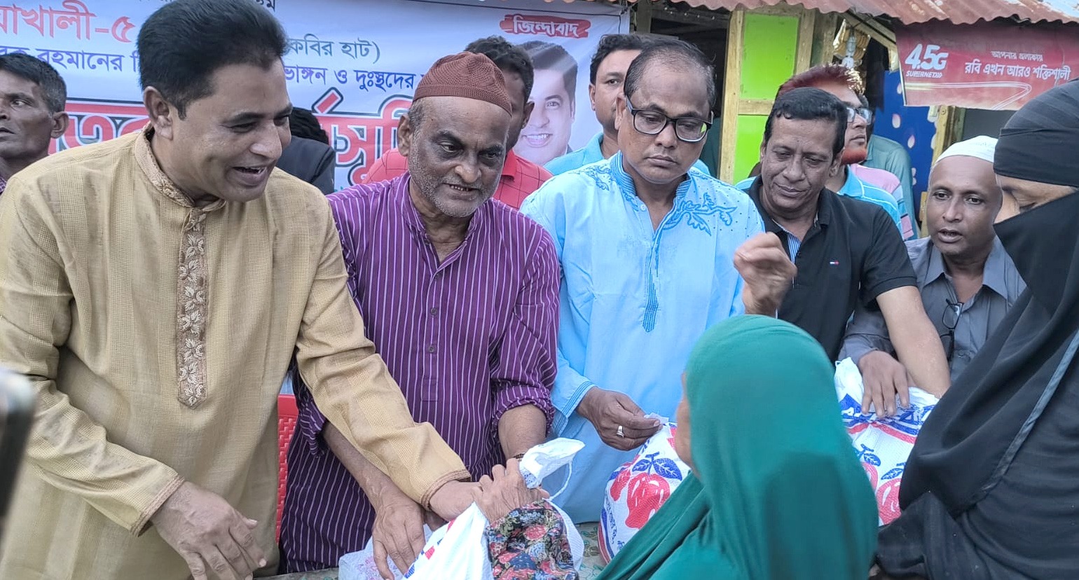 বুধবার বিকেল ৫টায় মুছাপুর ক্লোজার সংলগ্ন স্থানে আয়োজিত এক ত্রাণ বিতরণ অনুষ্ঠানে নদীভাঙনে ক্ষতিগ্রস্থ অসহায় ও দরিদ্র পরিবারের মাঝে চাল, ডাল, তেল, আলু, লবণ, বিস্কিটসহ নিত্যপ্রয়োজনীয় খাদ্যসামগ্রী বিতরণ করা হয়। এই সহায়তা মোহাম্মদ নূরুল আফসার বাহাদুরের ব্যক্তিগত উদ্যোগে এবং বিএনপির পক্ষ থেকে প্রদান করা হয়।