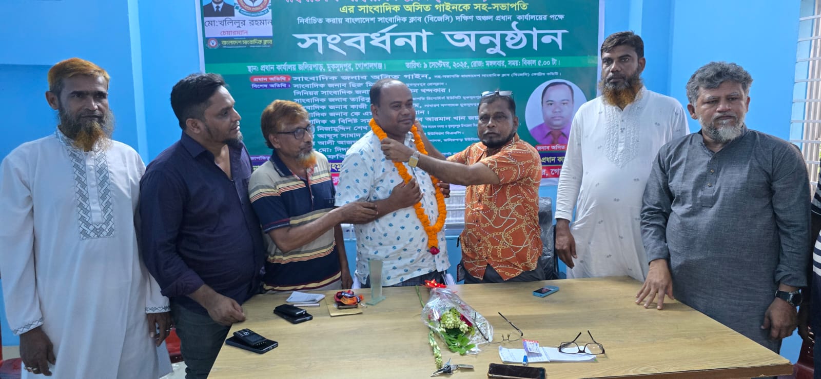 বাংলাদেশ সাংবাদিক ক্লাব (বিজেসি) দক্ষিণাঞ্চলের প্রধান কার্যালয় মুকসুদপুর উপজেলার জলিরপাড় কার্যালয়ে ৯সেপ্টেম্বর মঙ্গলবার বিকাল ৫টায় আয়োজিত এ সংবর্ধনা অনুষ্ঠানে বিভিন্ন গণমাধ্যমের সাংবাদিকরা অংশ নেন।