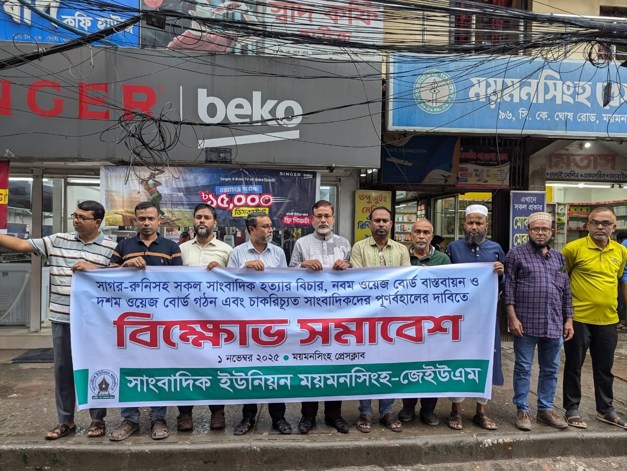 শনিবার (১ নভেম্বর ২০২৫) সকালে বাংলাদেশ ফেডারেল সাংবাদিক ইউনিয়ন (বিএফইউজে) ঘোষিত কেন্দ্রীয় কর্মসূচির অংশ হিসেবে ময়মনসিংহ প্রেসক্লাব চত্বরে এ সমাবেশ অনুষ্ঠিত হয়।
