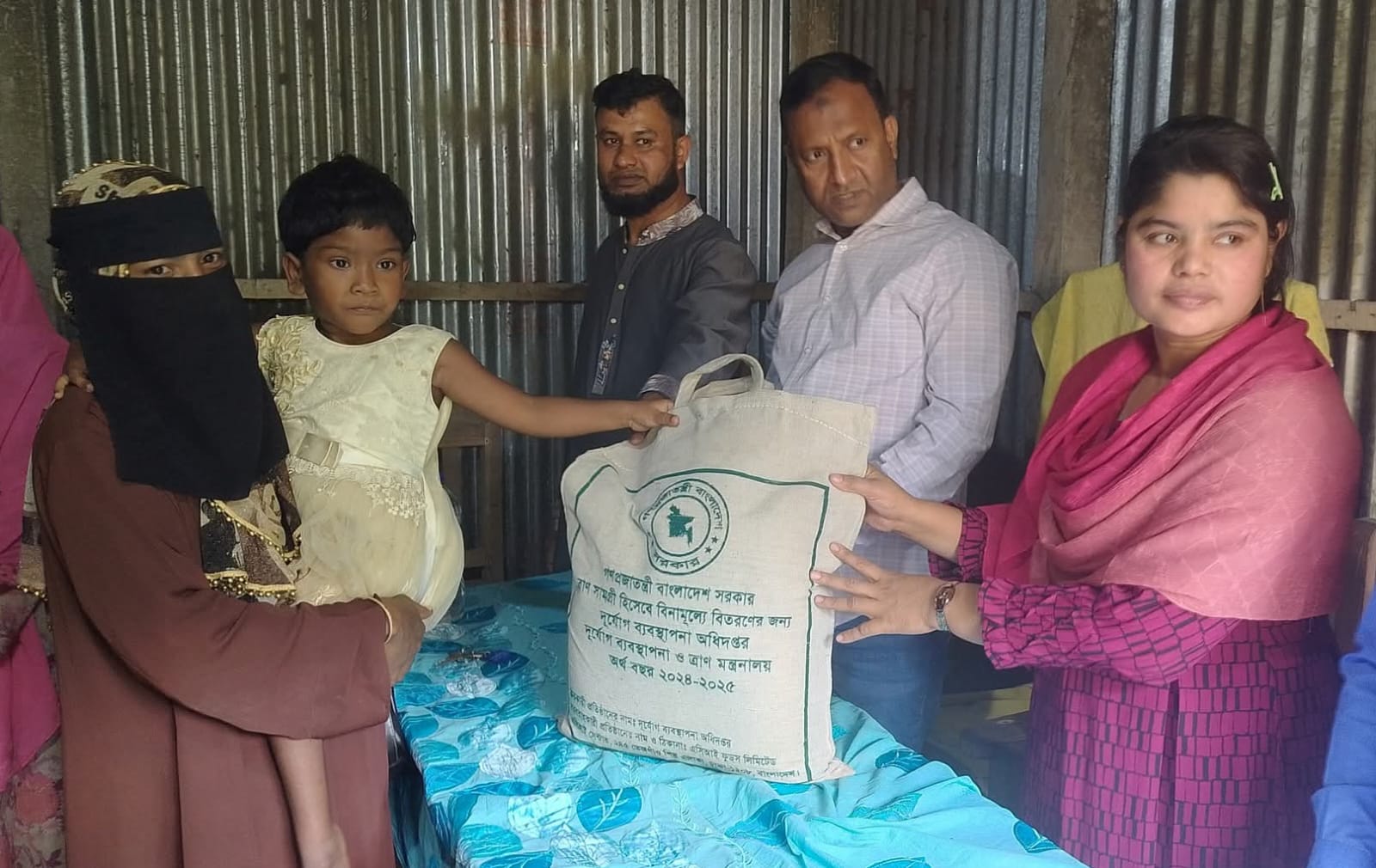 প্রতি বস্তার ব্যাগে ত্রাণ সামগ্রীর মধ্যে ছিল ১০ কেজি করে চাল, ১ কেজি করে দেশী মশুর ডাল, ১ কেজি করে আয়োডিন যুক্ত লবন, ১কেজি করে চিনি, ১লিটার করে ভোজ্য (সয়াবিন) তেল, ১০০গ্রাম করে মরিচের গুঁড়া, ২০০ গ্রাম করে হলুদের গুঁড়া ও ১০০ গ্রাম করে ধনিয়া গুঁড়া।