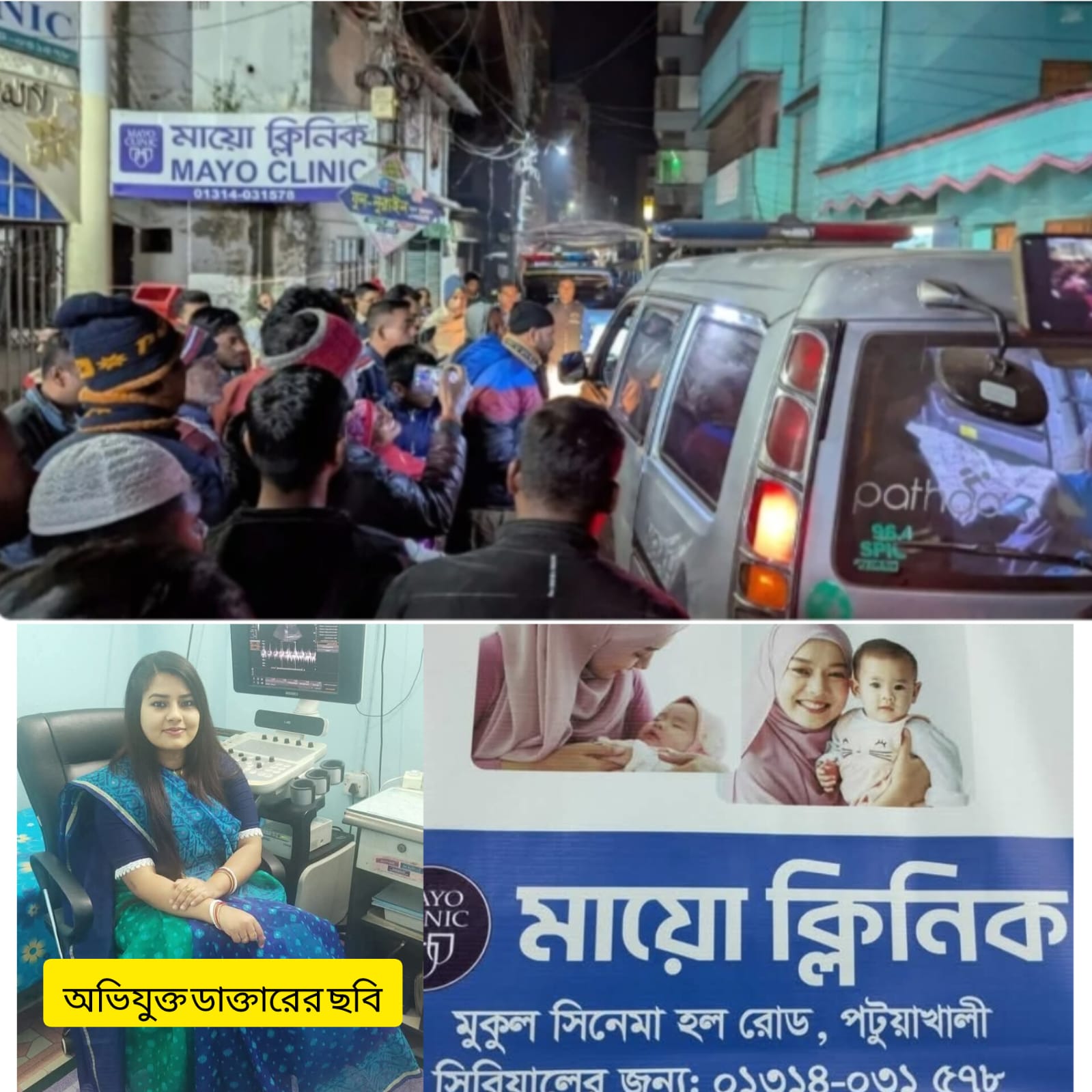 পটুয়াখালী শহরের মুকুল সিনেমা হল রোড এলাকার মায়ো ক্লিনিক-এ ভুল চিকিৎসার অভিযোগে এক রোগীর মৃত্যুর ঘটনা ঘটেছে। নিহত নারীর নাম কৃষ্ণা রানী (৩২)। আমতলী উপজেলার হলদিয়া ইউনিয়নের অফিস বাজার এলাকার বাসিন্দা। তার স্বামীর নাম পরিমল হাওলাদার, পেশায় ব্যবসায়ী।