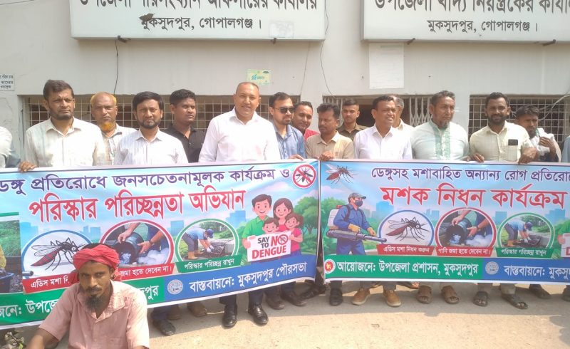 মুকসুদপুরে ডেঙ্গুসহ মশাবাহিত অন্যান্য রোগ প্রতিরোধে মশক নিধন কার্যক্রম ও পরিস্কার পরিছন্ন ব্যবস্থার কার্যক্রম উদ্বোধন