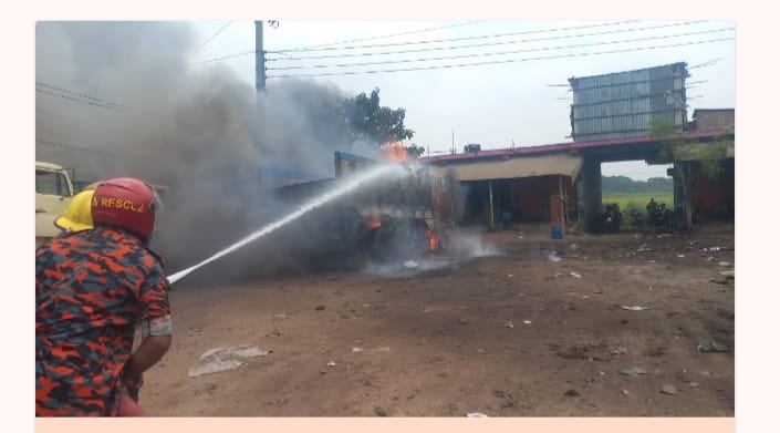 ঝিনাইদহ কালীগঞ্জে আগুনে পুড়ল ২ টি ট্রাক